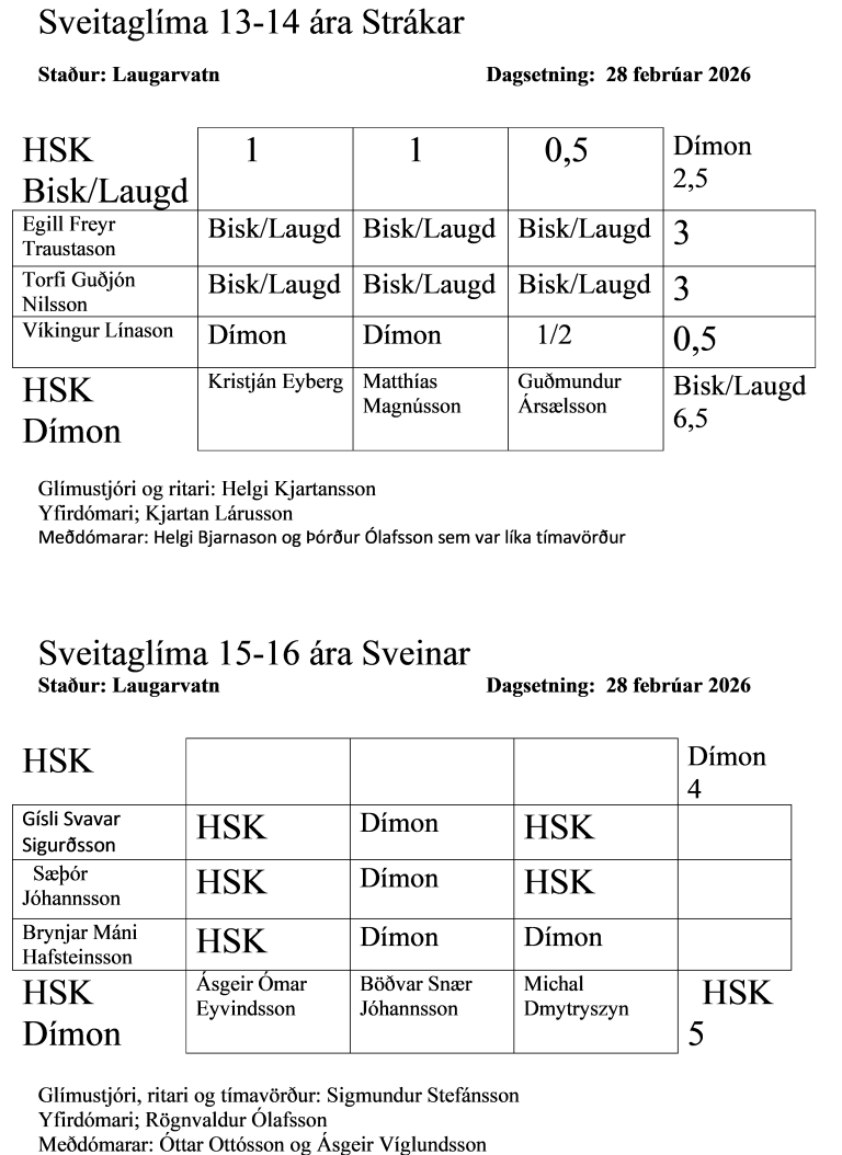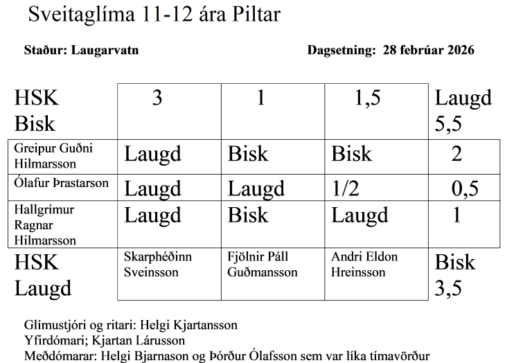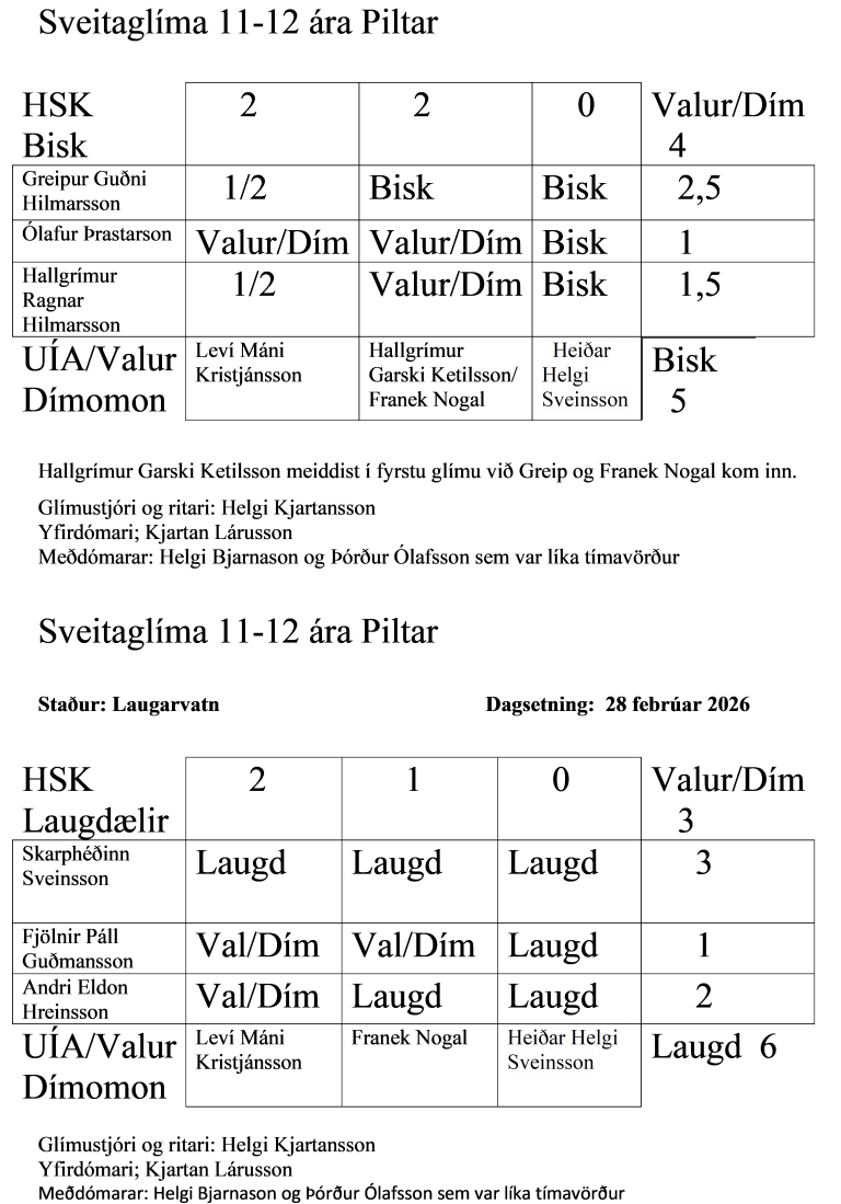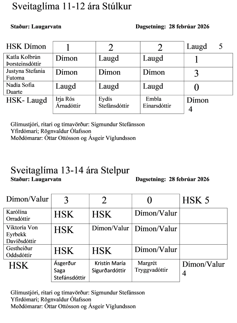 Sveitaglíma 11-16 ára fór fram í Íþróttahúsinu á Laugarvatni laugardaginn 28. febrúar 2026 af loknu grunnskólamóti.